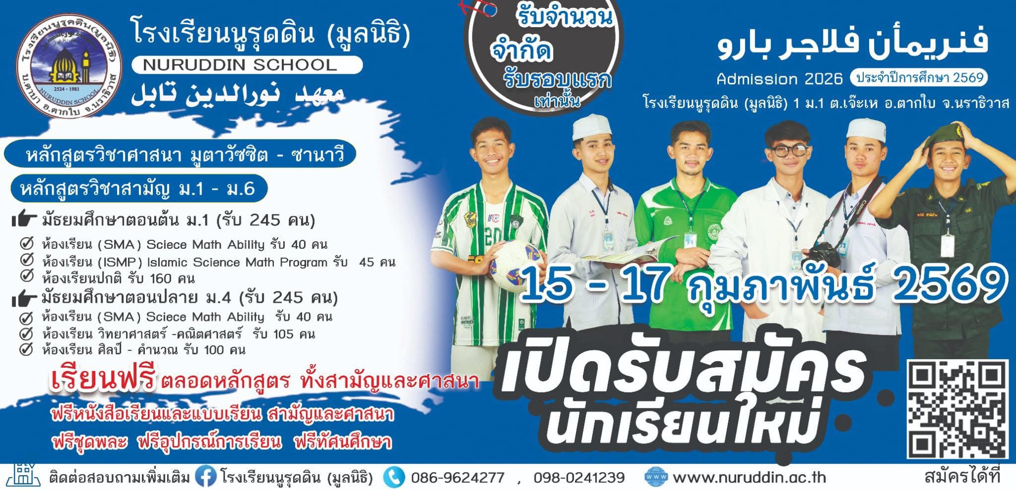 รับสมัครนักเรียนใหม่โรงเรียนนูรุดดิน (มูลนิธิ) ประจำปี 2569